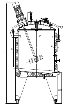 有效容積 | 筒體尺寸(D×h) | 總高(H) | 保溫層 | 進出料口徑 | 電機功率 | 攪拌速度 |