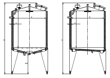 有效容積 | 筒體尺寸(D×h) | 總高(H) | 保溫層 | 進出料口徑 |